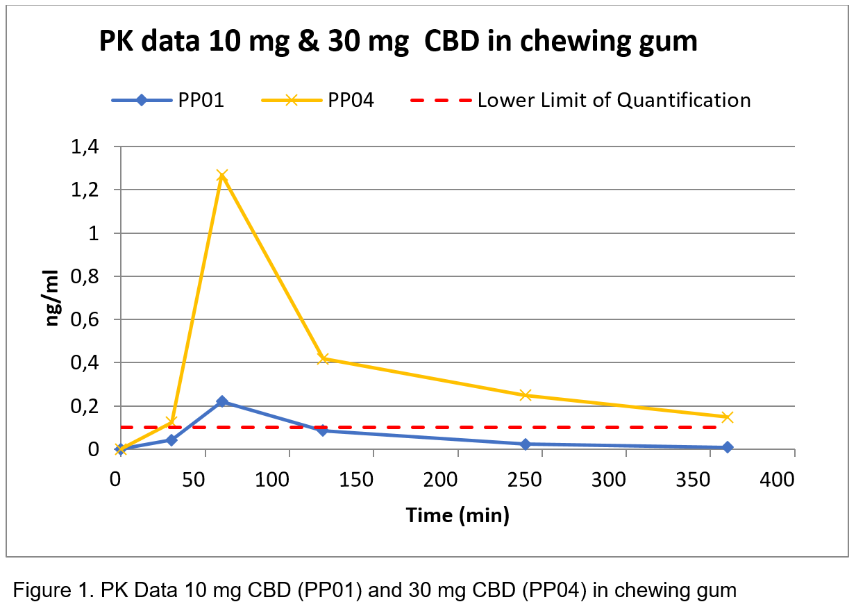Chewing gum, a novel delivery system for Hempoil Cannabidiol (CBD) formulations in the treatment of Irritable Bowel Syndrome (IBS) patients.